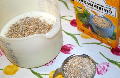 Laita ohrasuurimot turpoamaan piimän sekaan jo edellisenä iltana tai vähintään 2-3 tuntia ennen rieskan valmistusta. Käytä esikypsennettyjä suurimoita!