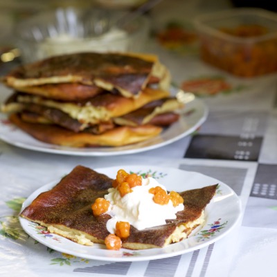 Parhaista perinneherkuista parhain – ternimaitopannukakku! Tavallinen pannukakku saa aivan uudenlaista makua ja rakennetta vasta poikineen lehmän maidosta, joka ei tarvitse kananmunaa hyytyäkseen. Ternimaidosta leivottu pannukakku on kananmunaton ja sopii siksi myös muna-allergikoille!